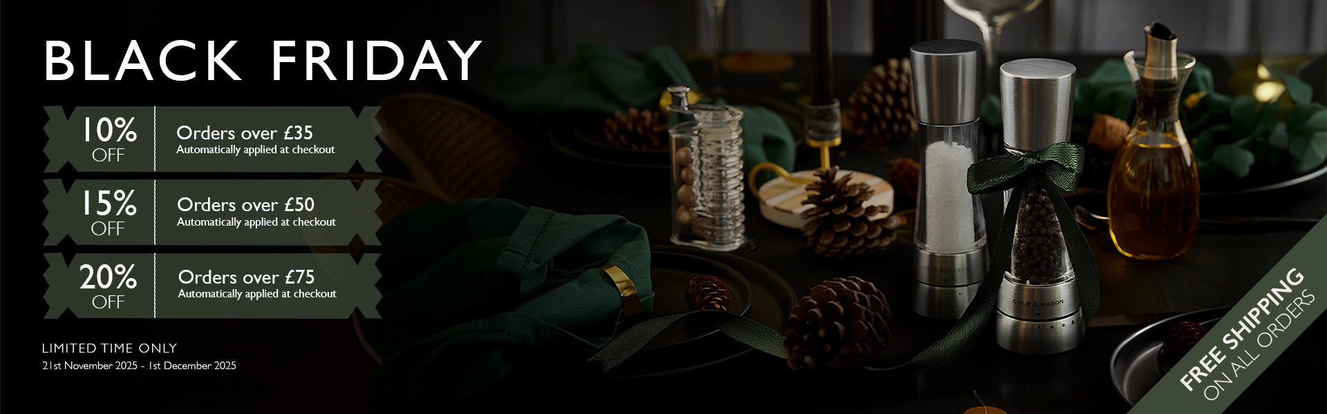 The origins of our brand date back to 1919 when Cole & Mason was founded as a giftware business in London. The company soon expanded into general home goods and in 1946 we launched our first wooden mill for seasoning. A passion for flavour was ignited: inspiring us to develop made-to-last products to bring out the best in everyday food, using the latest technologies and materials. This quest for quality and innovation are at the heart of our brand to this day.