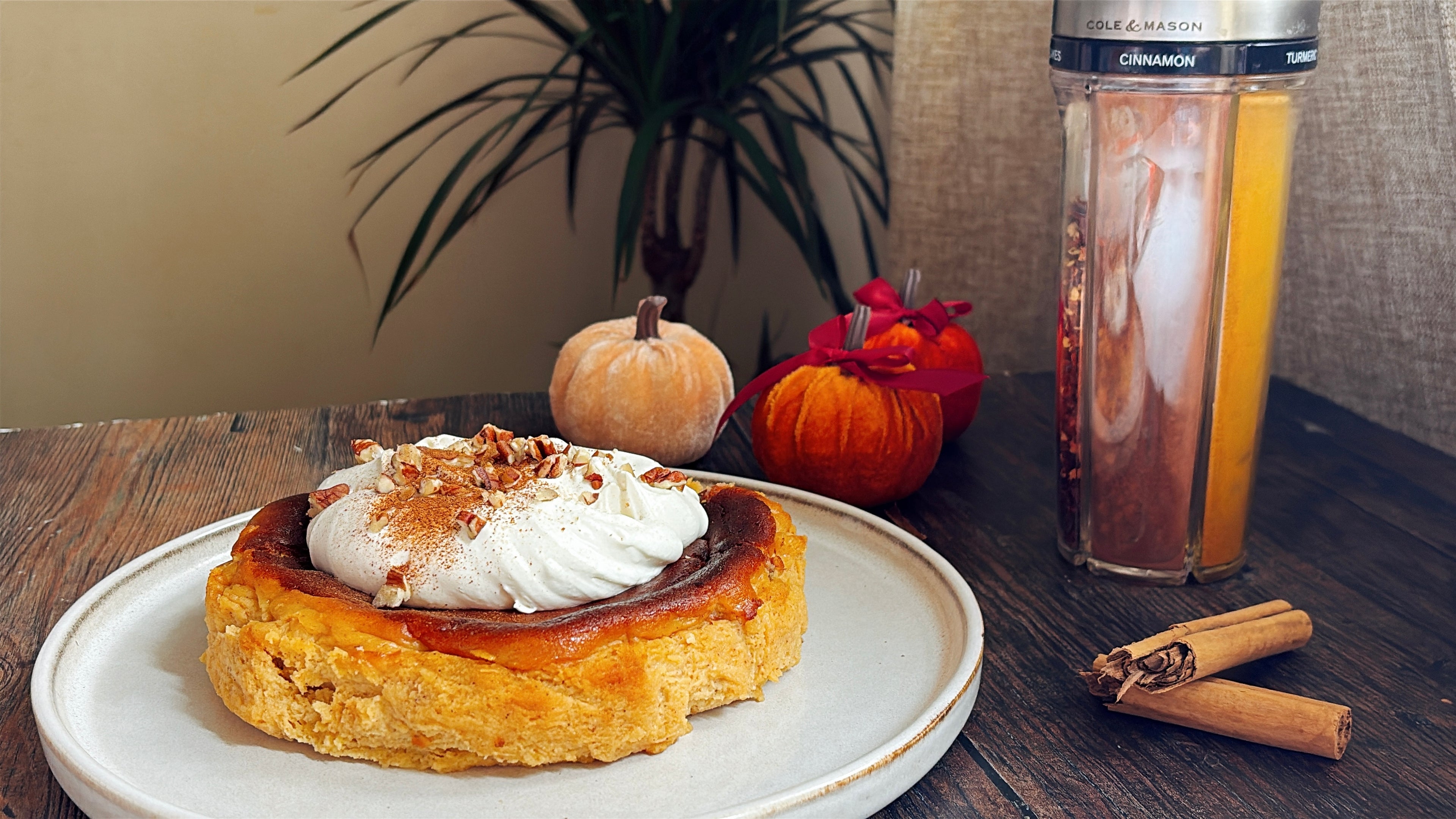 Spice up with the flavour of Autumnal season, this traditional Basque dessert with the addition of roasted pumpkin and your favourite spices. The result is a creamy and silky-smooth cheesecake, in time for the holiday season.