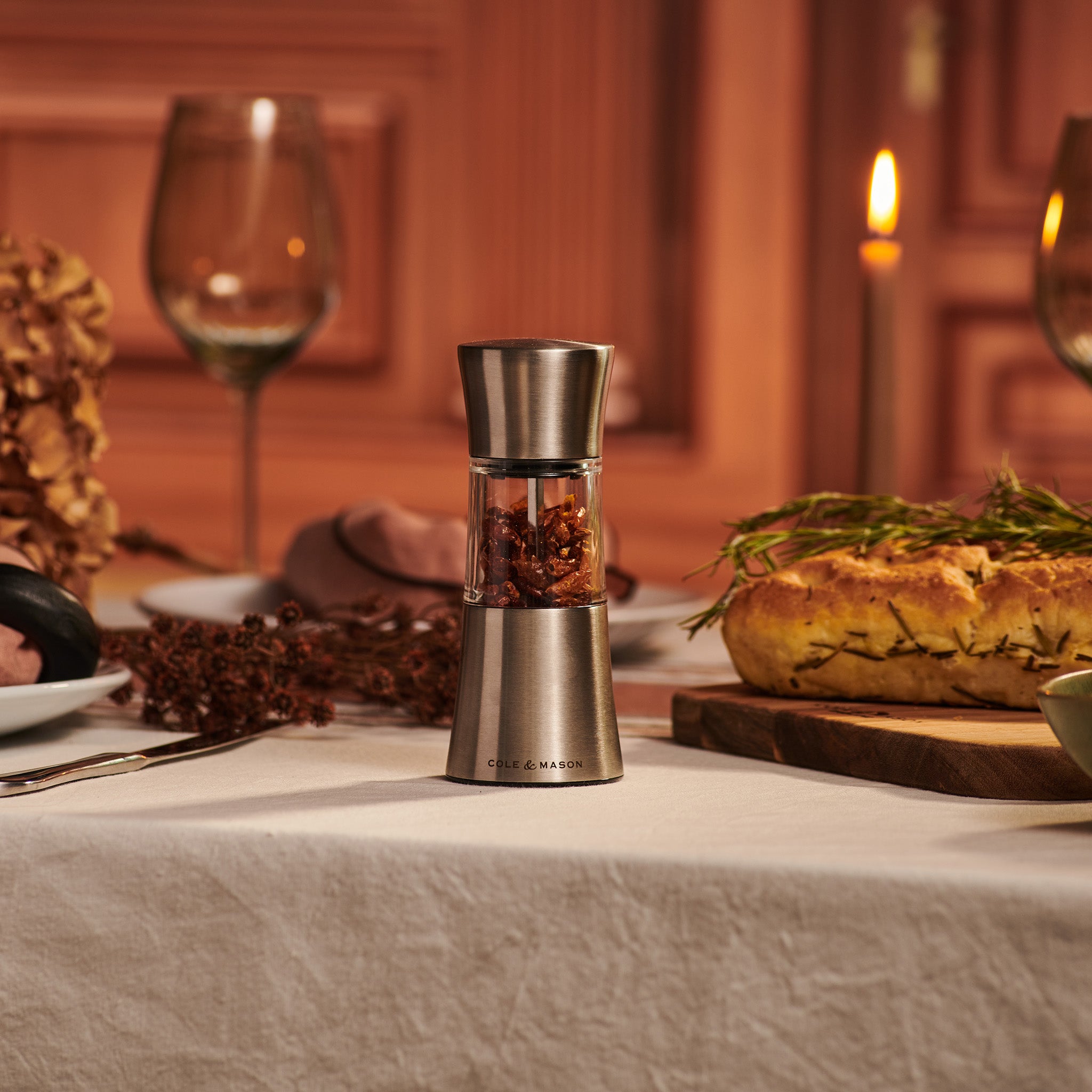 The Cole & Mason Derwent Christmas Gift Hamper is the ultimate festive treat for culinary enthusiasts. This premium set features the acclaimed Derwent Stainless Steel Salt and Pepper Mills, known for their precise grind select settings and elegant design. The set also includes a stainless steel refill funnel for effortless refilling, an acrylic tray for stylish presentation, and the Stadhampton Chilli & Spice Mill for adding fiery flavour to festive dishes. Beautifully presented in a black Cole & Mason gift box, it’s a luxurious and practical gift for those who love the art of seasoning.