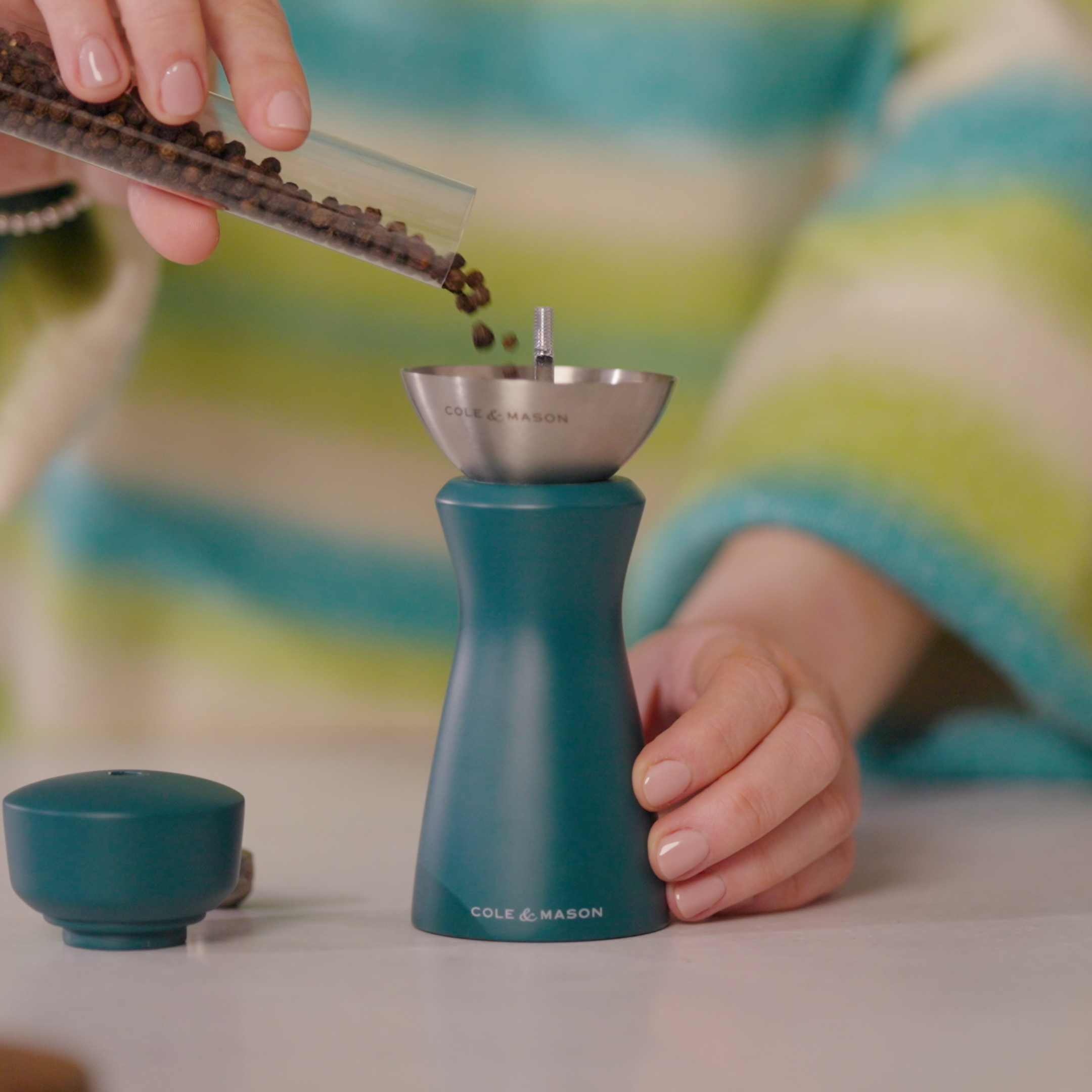 With its bright sea salt blue finish, the Kenton Salt and Pepper Mill in Sea Salt offers a crisp, bright and modern touch to everyday dining. Behind its clean exterior lies a high-performance ceramic mechanism that’s compatible with salt or pepper, giving you total flexibility. Sold as a singular mill, unfilled and equipped with interchangeable knobs, it’s easy to tailor your colour and contents. A perfect fit for contemporary kitchens and open shelving, this mill brings minimalist style and everyday practicality in equal measure.