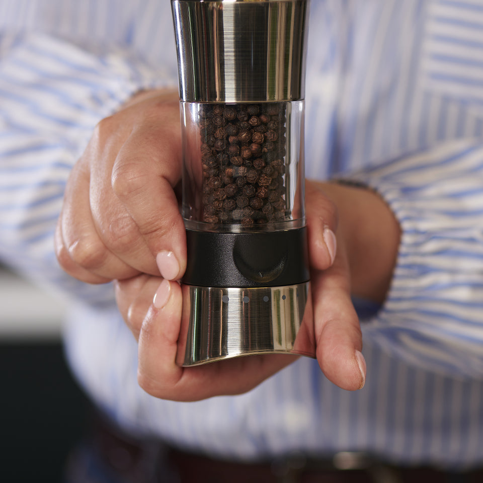 Our premium range of grind select mills allows you to have complete control with 5 pre-set grind levels for pepper and 3 pre-set grind levels for salt, to provide precise adjustment of the grind from fine to coarse. Select a fine grind for a big punch in sauces or soups or effortlessly switch to a more coarse grind for a more subtle but longer lasting taste, great for salads or steaks.
