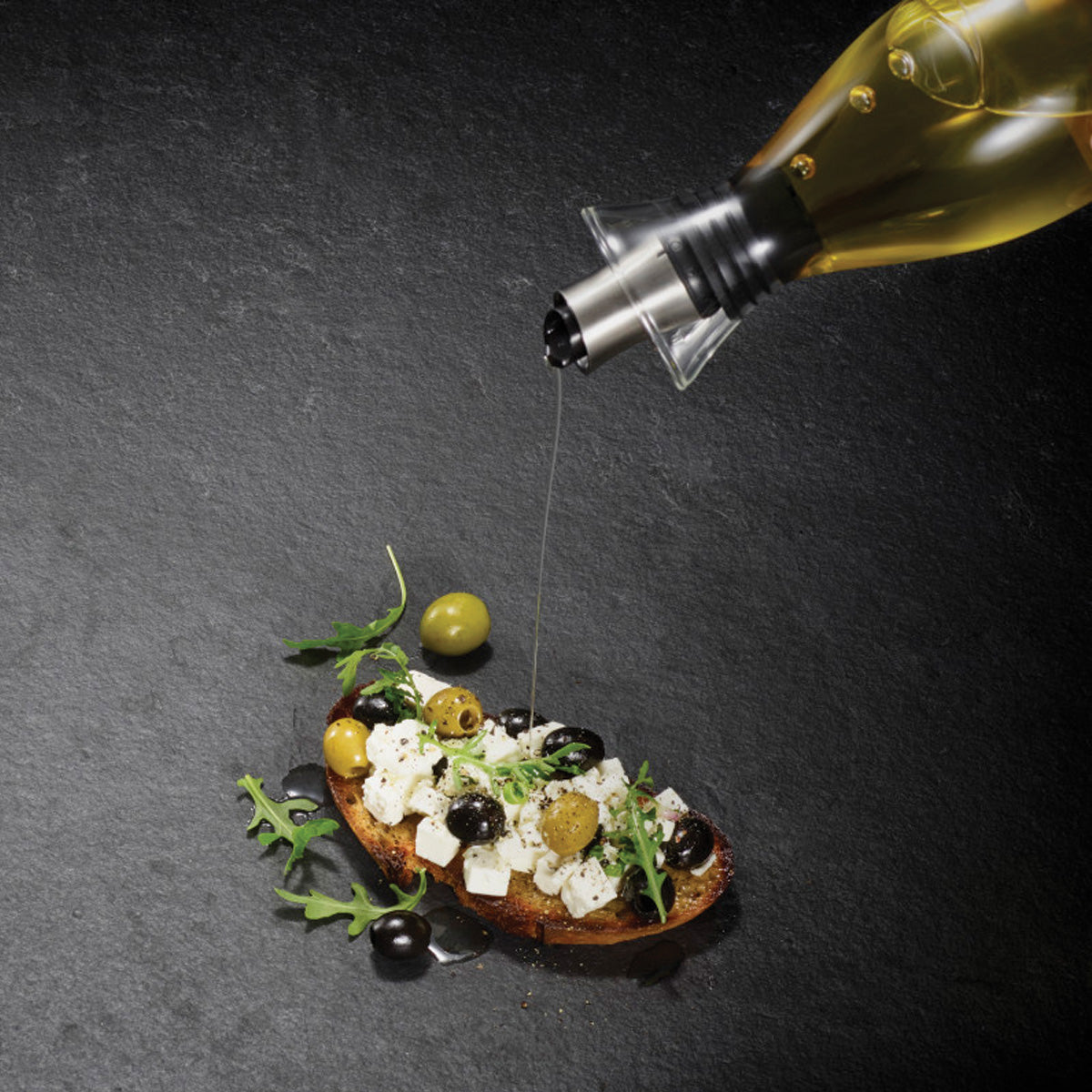 - Designed spout ensures precise dispensing of oils and vinegars.