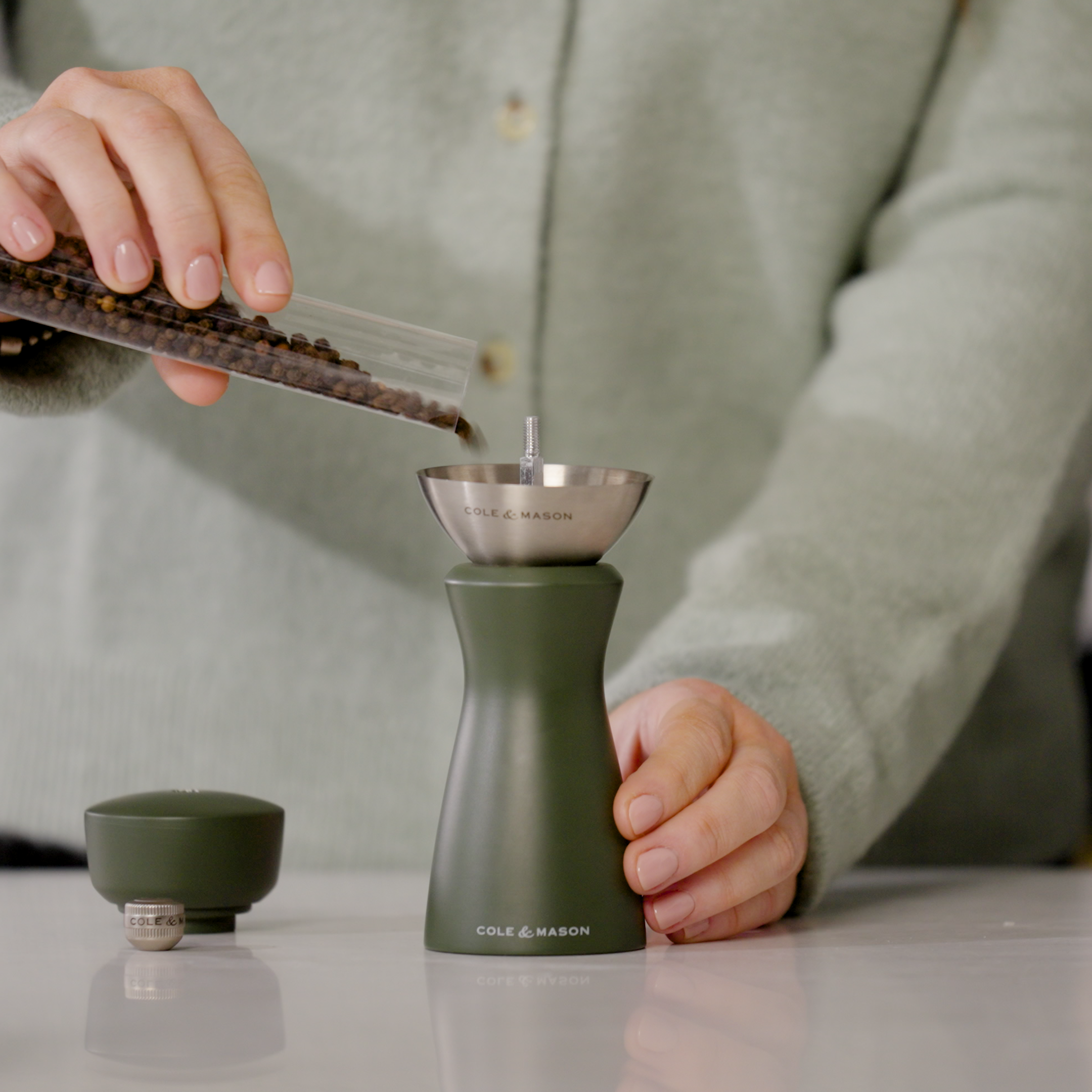 The Kenton Rosemary Salt & Pepper Mill is where versatility meets serene style. Its soft rosemary green finish adds a fresh, natural touch to any kitchen or dining setting. Designed with a ceramic mechanism suitable for both salt and pepper, each mill offers full flexibility thanks to interchangeable knobs – ideal for identifying contents and mixing colours across the range. Supplied as a singular mill and unfilled, it’s ready for your favourite seasoning. Made to be customised and enjoyed, this is a mill for those who value thoughtful, adaptable design.