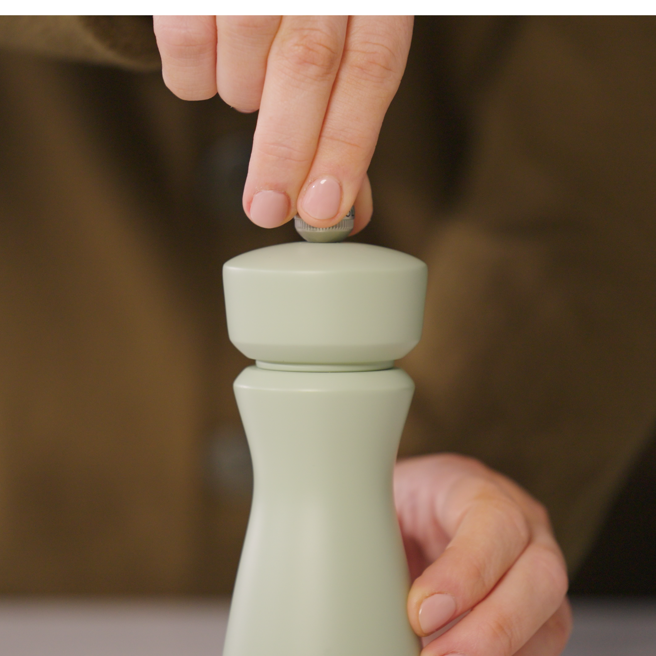 The Kenton Sage Salt & Pepper Mill is where versatility meets subtle style. Its muted sage green finish brings calm character to any kitchen or dining space. Designed with a ceramic mechanism that works equally well with salt or pepper, each mill offers full flexibility thanks to interchangeable knobs – perfect for designating contents and mixing colours across the range. Sold as a singular mill and supplied unfilled, it’s ready for you to add your favourite seasoning. Made to be customised and enjoyed, this is a mill for those who appreciate thoughtful design.