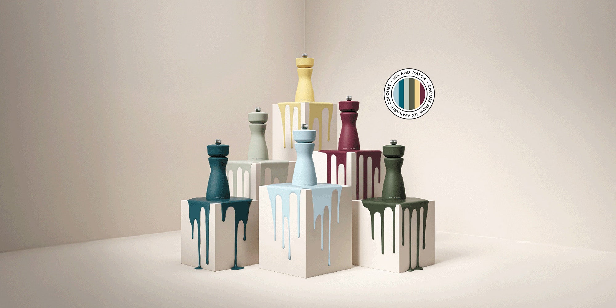 Choose contrasting colours for your Kenton mills to add visual impact and express your personality with a vibrant, confident table centrepiece.