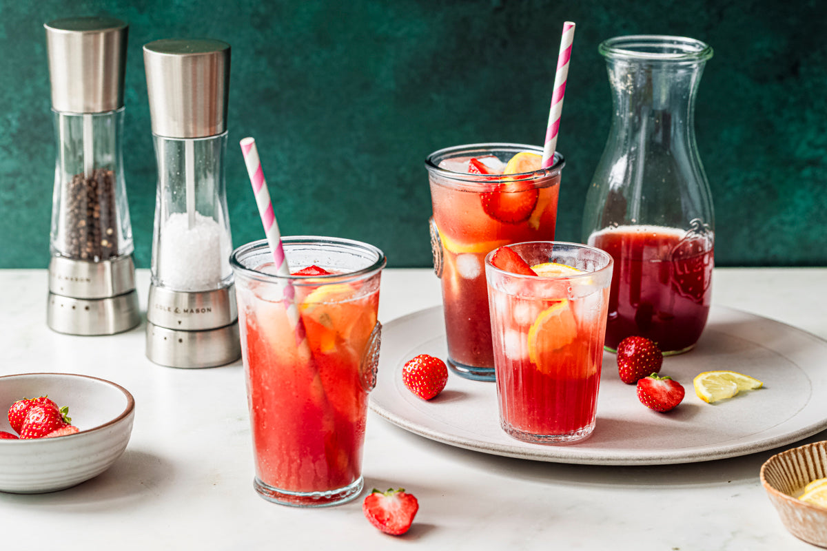 - Garnish with sliced strawberries and lemon, then serve chilled.